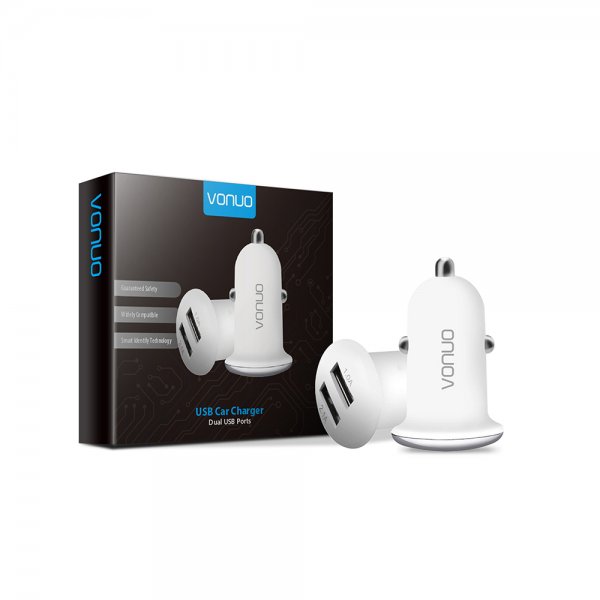 Home/Produkten/Auto-Ladegerät/Dual Port KFZ Ladegerät Weiß 2100mA, Blister